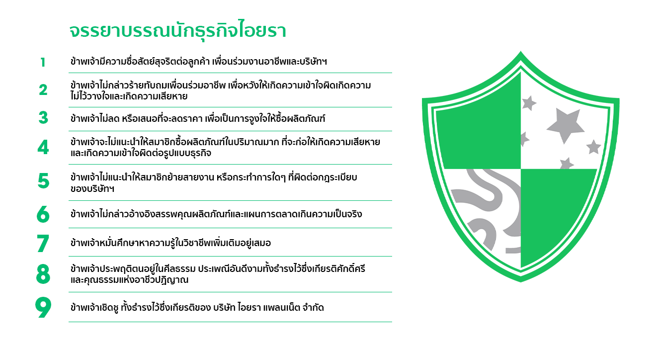 ยึดมั่นในจรรยาบรรณการทำงานเป็นหลักปฏิบัติที่สำคัญในการดำเนินธุรกิจทุกด้าน